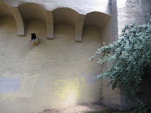 Views of the Oakland Avenue bridge abutment from townhouse units E, F and G