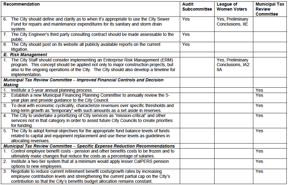 Vice Mayor Chiang created a matrix of the recommendations.